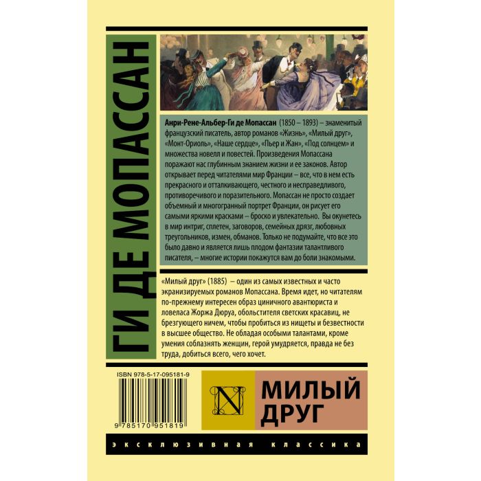 "Милый друг" (1885) – один из самых известных и часто экранизируемых романов Мопассана. Время идет, но читателям по-прежнему интересен образ циничного авантюриста и ловеласа Жоржа Дюруа, обольстителя светских красавиц, не брезгующего ничем, чтобы пробиться из нищеты и безвестности в высшее общество. Не обладая особыми талантами, кроме умения соблазнять женщин, герой умудряется, правда, не без труда, добиться всего, чего хочет.