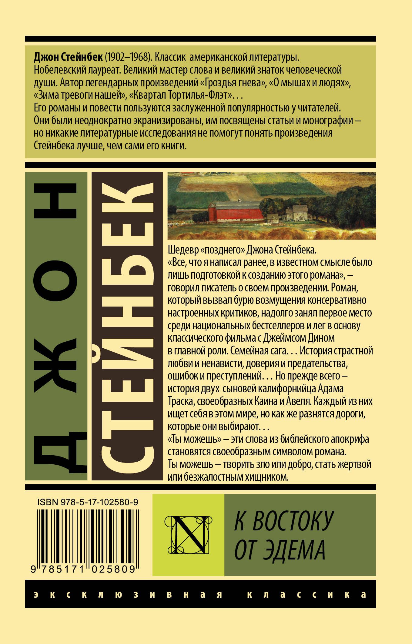 Шедевр "позднего" Джона Стейнбека. "Все, что я написал ранее, в известном смысле было лишь подготовкой к созданию этого романа", – говорил писатель о своем произведении. Роман, который вызвал бурю возмущения консервативно настроенных критиков, надолго занял первое место среди национальных бестселлеров и лег в основу классического фильма с Джеймсом Дином в главной роли. Семейная сага… История страстной любви и ненависти, доверия и предательства, ошибок и преступлений… Но прежде всего – история двух сыновей калифорнийца Адама Траска, своеобразных Каина и Авеля. Каждый из них ищет себя в этом мире, но как же разнятся дороги, которые они выбирают… "Ты можешь" – эти слова из библейского апокрифа становятся своеобразным символом романа. Ты можешь – творить зло или добро, стать жертвой или безжалостным хищником.