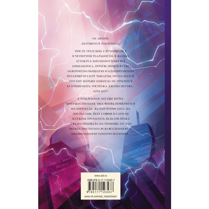 После трагедии, случившейся в Четвертой Реальности, в жизни Аттикуса Хиггинботтома все изменилось. Почувствовав в себе невероятно мощную и одновременно пугающую силу Чикарды, он надеется, что ему больше никогда не придется ее применить. Госпожа Джейн мертва... или нет? Сломленная, но еще более могущественная, она вновь появляется из ниоткуда, желая отомстить. На этот раз Тик, Пол, София и Сато не должны проиграть, ведь Госпожа Джейн призвала на помощь то, что может поглотить всю Вселенную, - неизведанную темную материю...