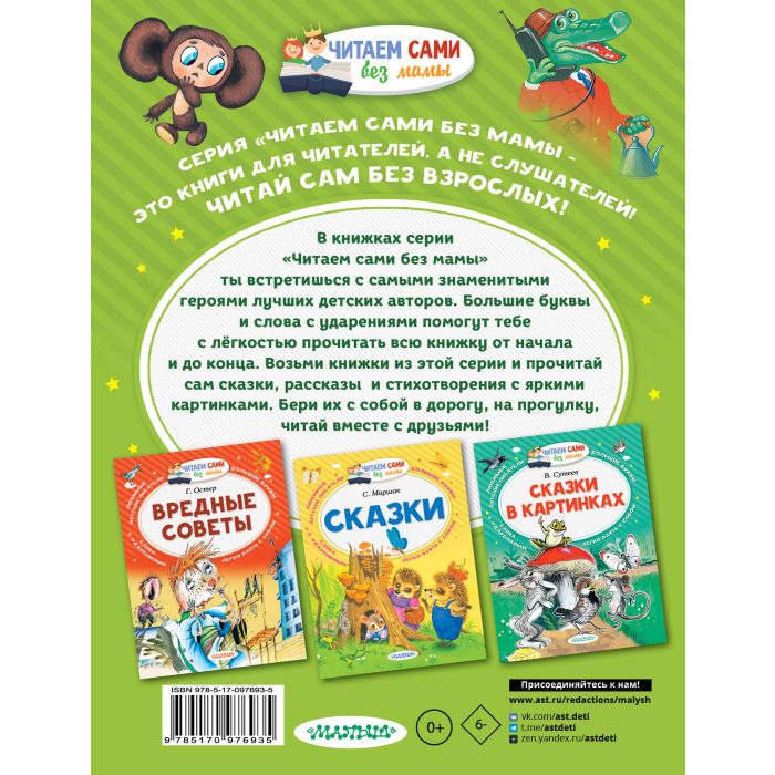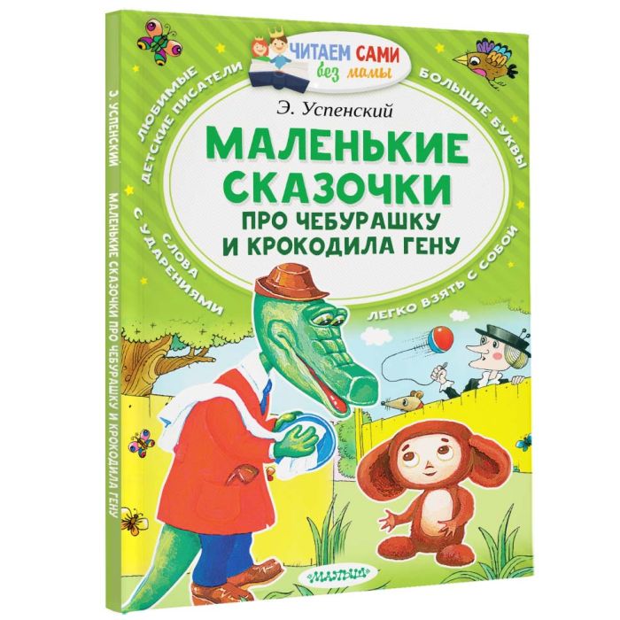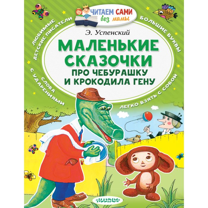 Книга "Маленькие сказочки про Чебурашку и крокодила Гену" Э. Успенского отлично подходит для первого самостоятельного чтения. Ведь в этом сборнике удобного формата коротенькие сказочки, большие буквы, слова с ударениями и много цветных иллюстраций. Книжки серии "Читаем сами без мамы" можно легко брать с собой в дорогу, на прогулку и читать вместе с друзьями.