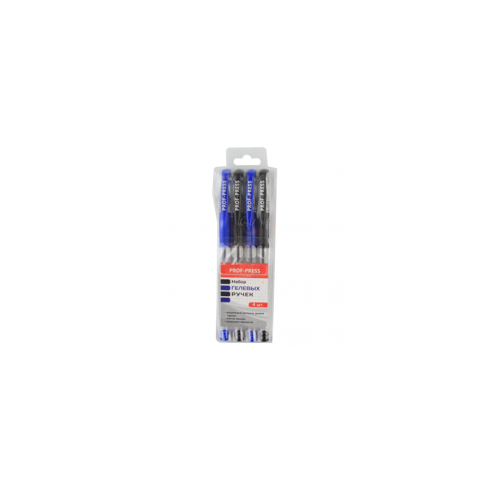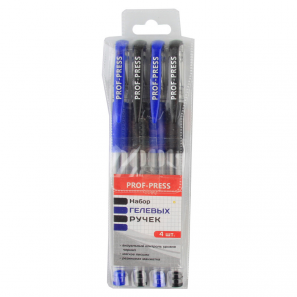 Набор ручек гелевых 4шт (2 синих, 2 черных) с резин манжеткой