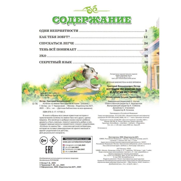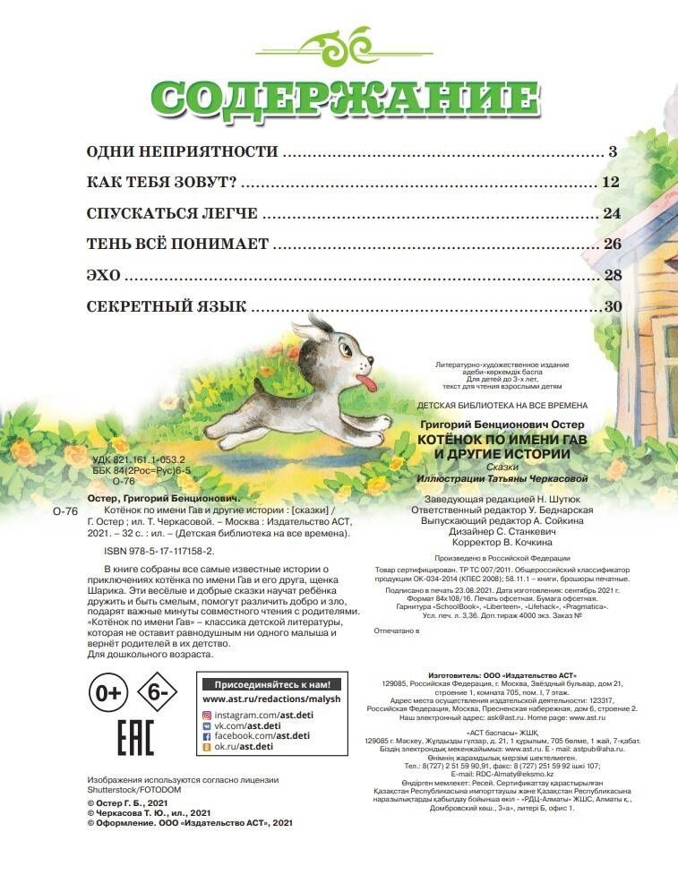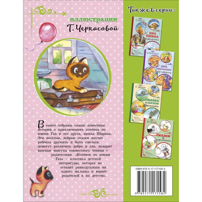 В книге собраны самые известные истории о приключениях котенка по имени Гав и его друга, щенка Шарика. Эти веселые, добрые сказки научат ребенка дружить и быть смелым , помогут различать добро и зло, подарят важные минуты совместного чтения с родителями. "Котенок по имени Гав" - классика детской литературы, которая не оставит равнодушным ни одного малыша и вернет родителей в их детство.