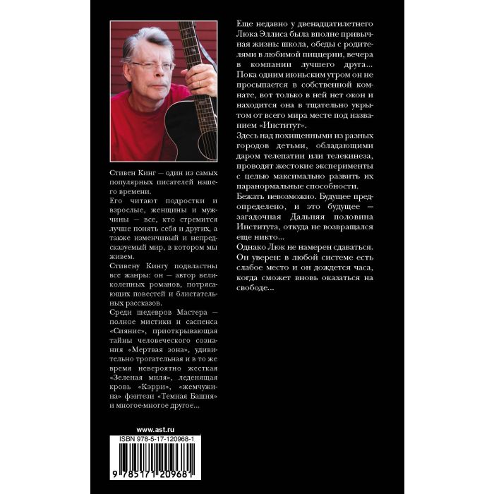 Еще недавно у двенадцатилетнего Люка Эллиса была вполне привычная жизнь: школа, обеды с родителями в любимой пиццерии, вечера в компании лучшего друга… Пока одним июньским утром он не просыпается в собственной комнате, вот только в ней нет окон и находится она в тщательно укрытом от всего мира месте под названием "Институт". Здесь над похищенными из разных городов детьми, обладающими даром телепатии или телекинеза, проводят жестокие эксперименты с целью максимально развить их паранормальные способности. Бежать невозможно. Будущее предопределено, и это будущее — загадочная Дальняя половина Института, откуда не возвращался еще никто… Однако Люк не намерен сдаваться. Он уверен: в любой системе есть слабое место и он дождется часа, когда сможет вновь оказаться на свободе...