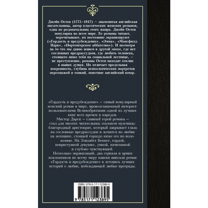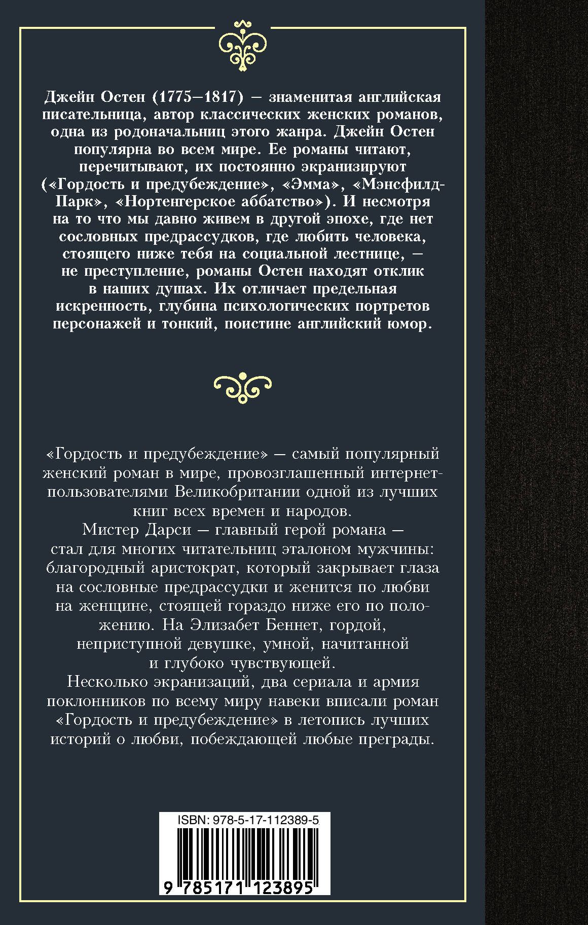 "Гордость и предубеждение" – самый популярный женский роман в мире, провозглашенный интернет-пользователями Великобритании одной из лучших книг всех времен и народов. Мистер Дарси – главный герой романа – стал для многих читательниц эталоном мужчины, благородный аристократ, который закрывает глаза на сословные предрассудки и женится по любви на женщине, стоящей гораздо ниже его по положению. На Элизабет Беннет, гордой, неприступной девушке, умной, начитанной и глубоко чувствующей. Несколько экранизаций, два сериала и армия поклонников по всему миру навеки вписали роман "Гордость и предубеждение" в летопись лучших историй о любви, побеждающей любые преграды.
