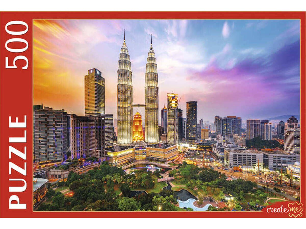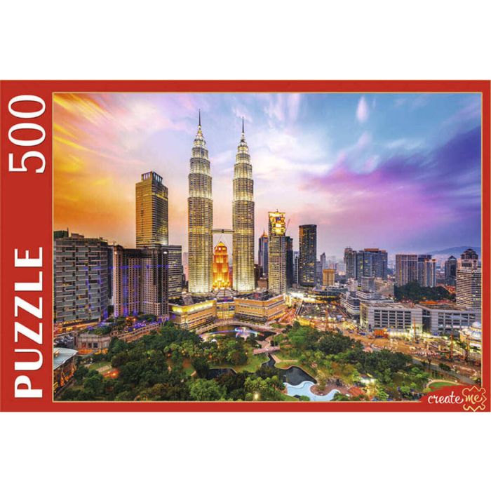 Puzzle Рыжий кот-500 Малайзия. Башни Петронас на закате