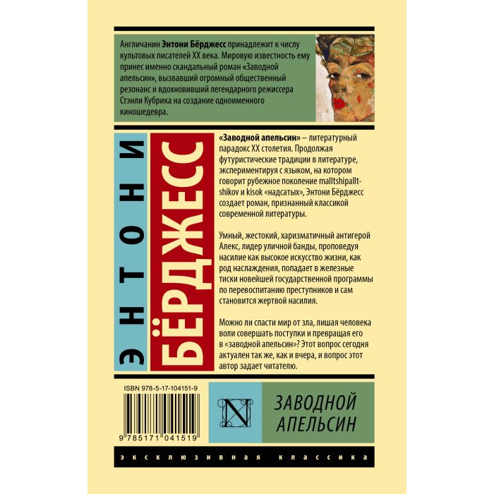 "Заводной апельсин" – литературный парадокс ХХ столетия. Продол-жая футуристические традиции в литературе, экспериментируя с языком, на котором говорит рубежное поколение malltshipalltshikov и kisok "надсатых", Энтони Бёрджесс создает роман, признанный классикой современной литературы.