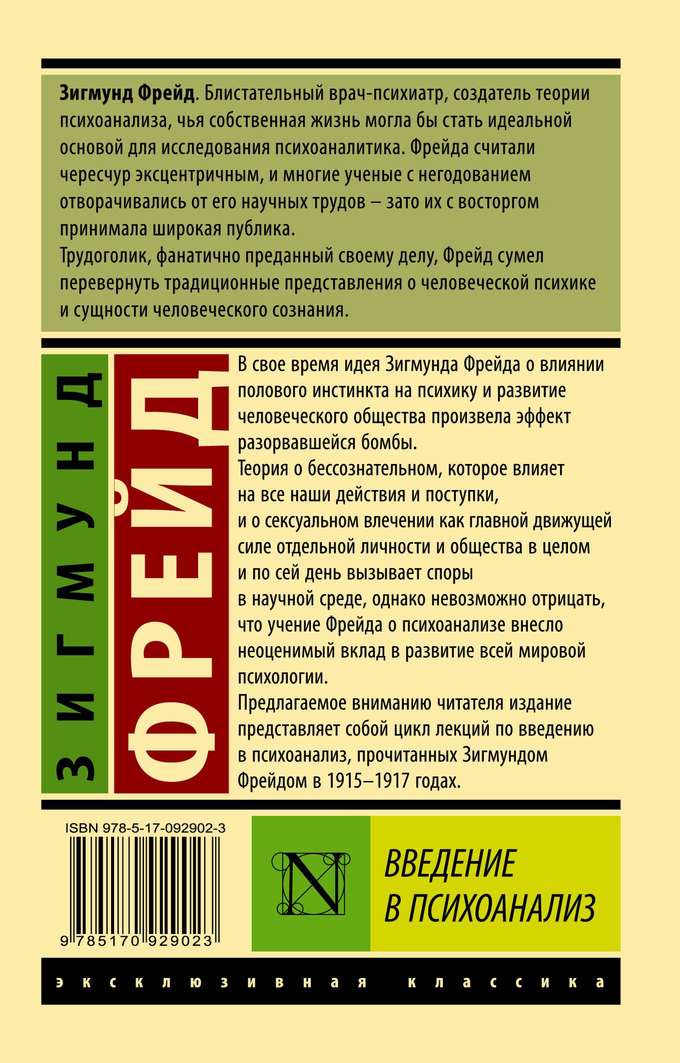 Предлагаемое вниманию читателя издание представляет собой цикл лекций по введению в психоанализ, прочитанных Зигмундом Фрейдом в 1915–1917 годах.