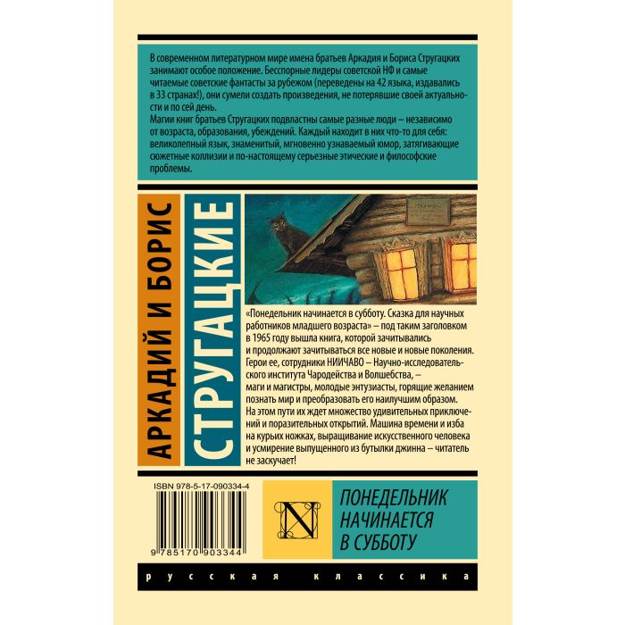 "Понедельник начинается в субботу. Сказка для научных работников младшего возраста" – под таким заголовком в 1965 году вышла книга, которой зачитывались и продолжают зачитываться все новые и новые поколения. Герои ее, сотрудники НИИЧАВО, – Научно-исследовательского института Чародейства и Волшебства, – маги и магистры, молодые энтузиасты, горящие желанием познать мир и преобразовать его наилучшим образом. На этом пути их ждет множество удивительных приключений и поразительных открытий. Машина времени и изба на курьих ножках, выращивание искусственного человека и усмирение выпущенного из бутылки джинна – читатель не заскучает!