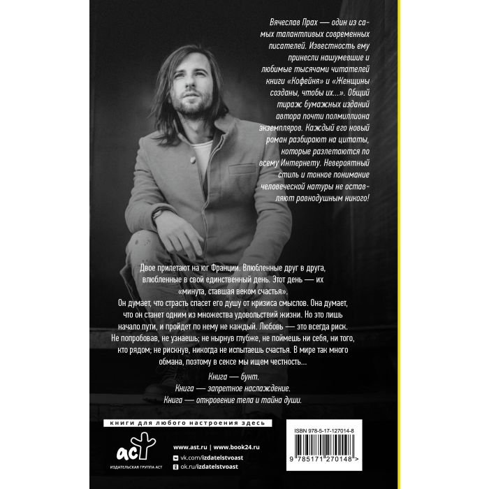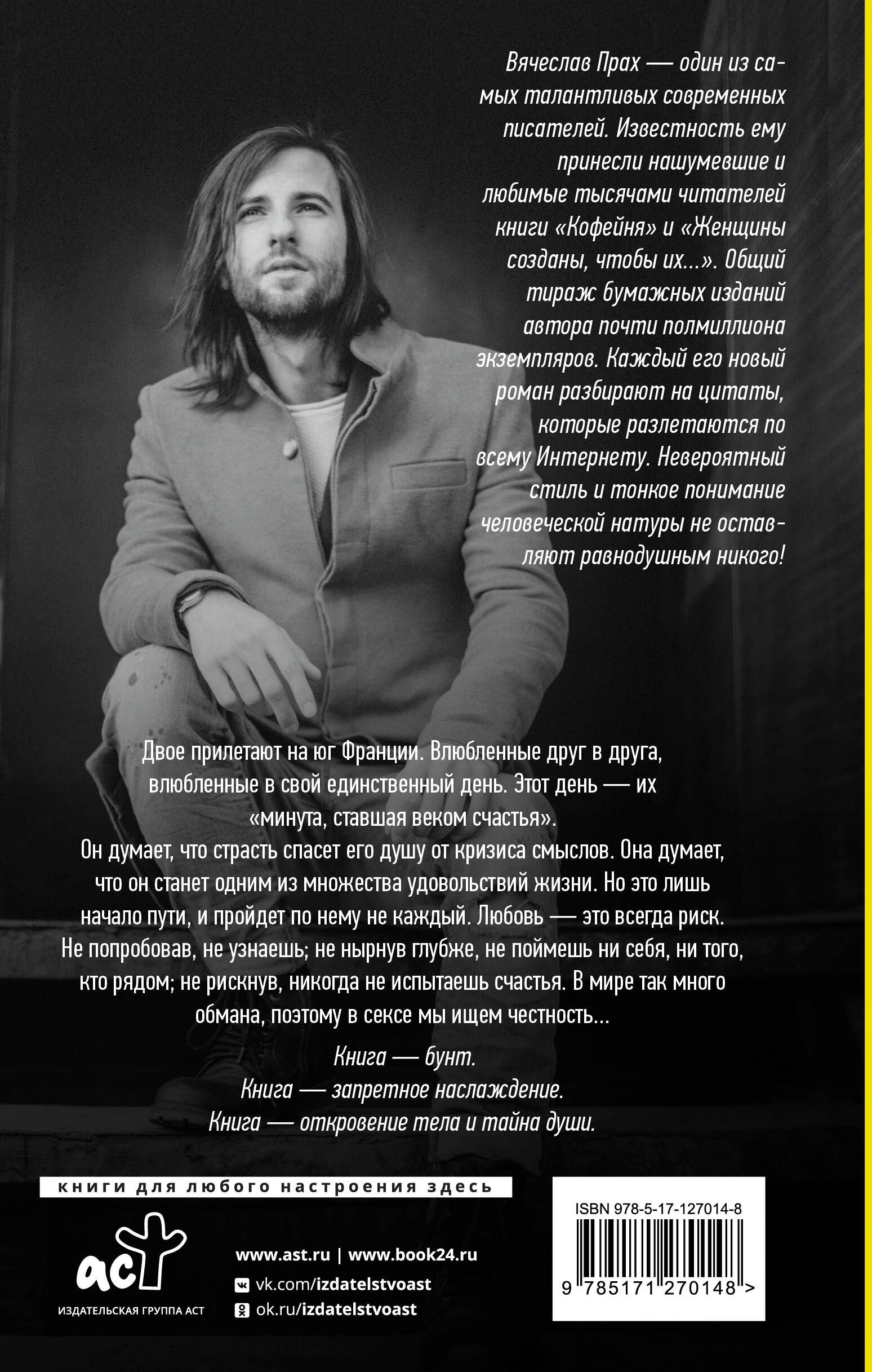 Двое прилетают на юг Франции. Влюбленные друг в друга, влюбленные в свой единственный день. Этот день — их "минута, ставшая веком счастья". Он думает, что страсть спасет его душу от кризиса смыслов. Она думает, что он станет одним из множества удовольствий жизни. Но это лишь начало пути, и пройдет по нему не каждый. Любовь — это всегда риск. Не попробовав, не узнаешь; не нырнув глубже, не поймешь ни себя, ни того, кто рядом; не рискнув, никогда не испытаешь счастья. В мире так много обмана, поэтому в сексе мы ищем честность… Книга — бунт. Книга — запретное наслаждение. Книга — откровение тела и тайна души.