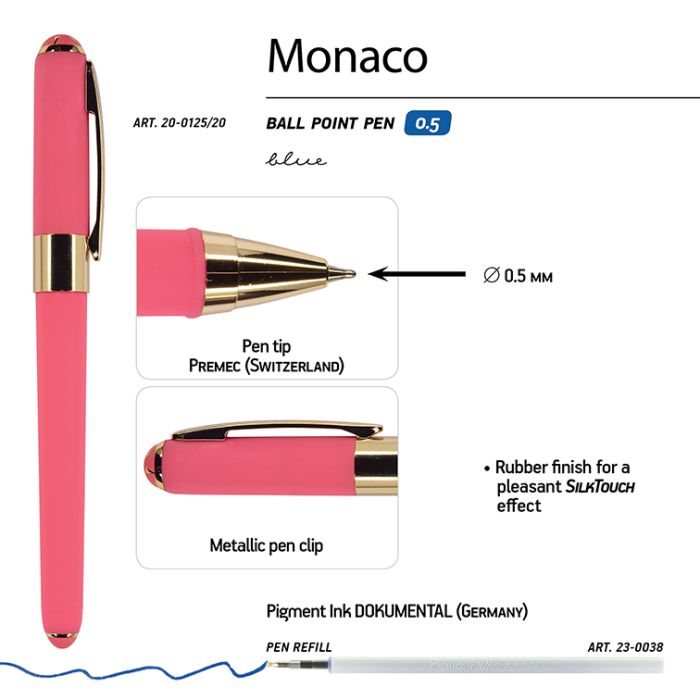 Ручка Альт "Monaco" Шариковая 0.5 Мм, Синяя (Коралловый Корпус)