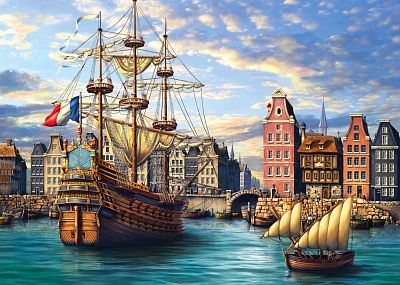 Холст С Красками По Номерам 22Х30 См. Старые Корабли В Порту