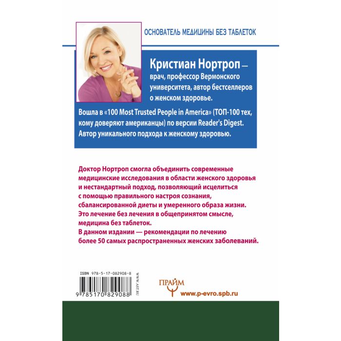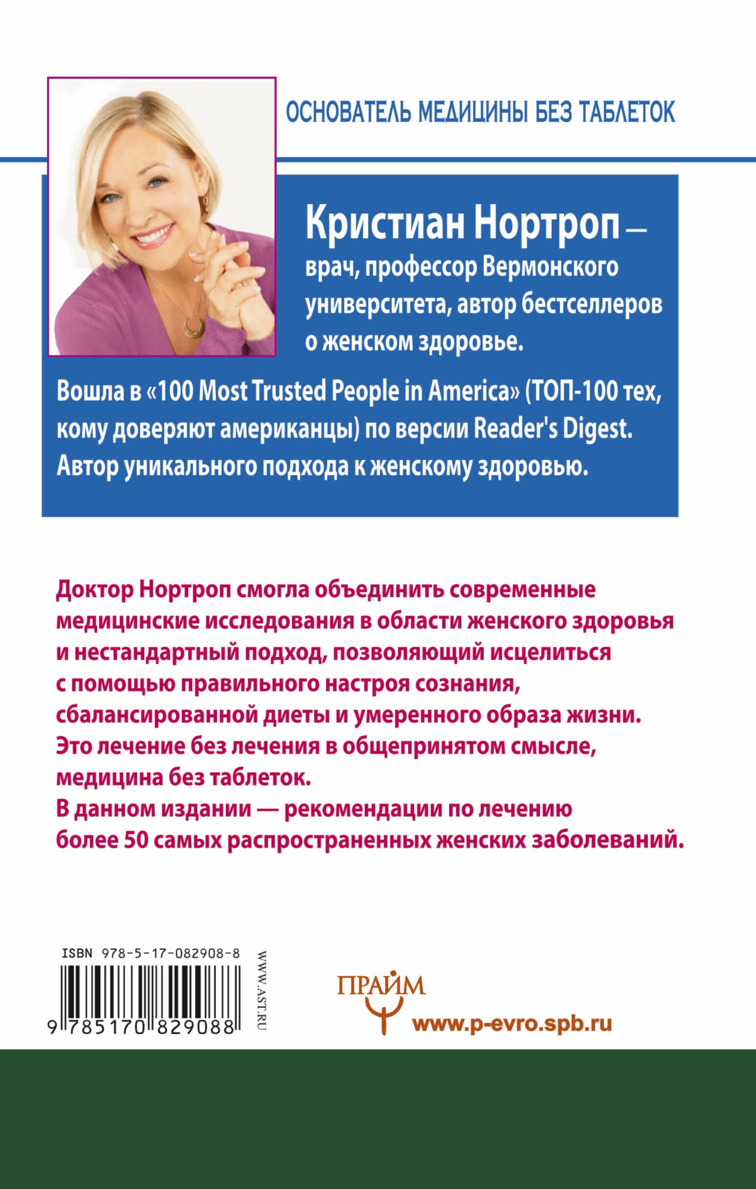 Перед вами книга — необычная, правдивая и невероятно информативная — так отзываются о работах Кристиан Нортроп читательницы по всему миру. Доктор Нортроп смогла объединить современные медицинские исследования в области женского здоровья и нестандартный подход, позволяющий исцелиться с помощью правильного настроя сознания, сбалансированной диеты и умеренного образа жизни. Это лечение без лечения в общепринятом смысле, медицина без таблеток. В данном издании главное место занимают советы и конкретные рекомендации по лечению более 50 самых распространенных женских болезней. Открывайте книгу, применяйте советы на практике — и очень скоро вы добьетесь значительного прогресса по отношению к своему здоровью!