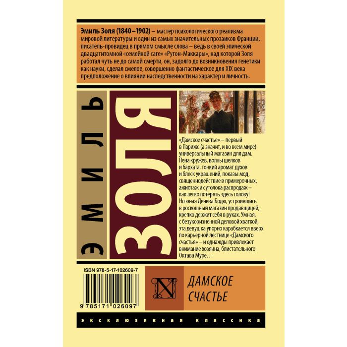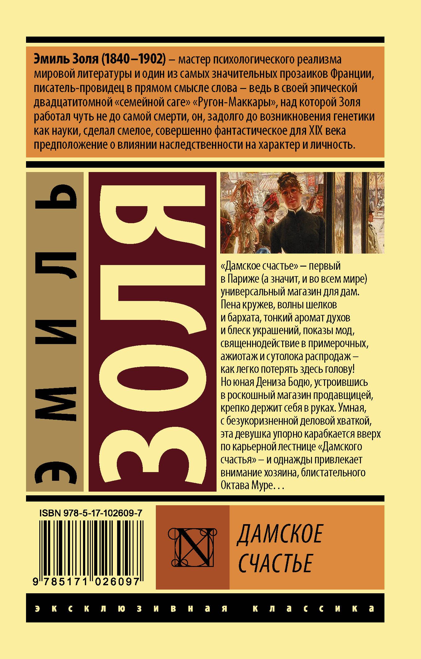 "Дамское счастье" – первый в Париже (а значит, и во всем мире) универсальный магазин для дам. Пена кружев, волны шелков и бархата, тонкий аромат духов и блеск украшений, показы мод, священнодействие в примерочных, ажиотаж и сутолока распродаж, – как легко потерять здесь голову! Но юная Дениза Бодю, устроившись в роскошный магазин продавщицей, крепко держит себя в руках. Умная, с безукоризненной деловой хваткой, эта девушка упорно карабкается вверх по карьерной лестнице "Дамского счастья", – и однажды привлекает внимание хозяина, блистательного Октава Муре…