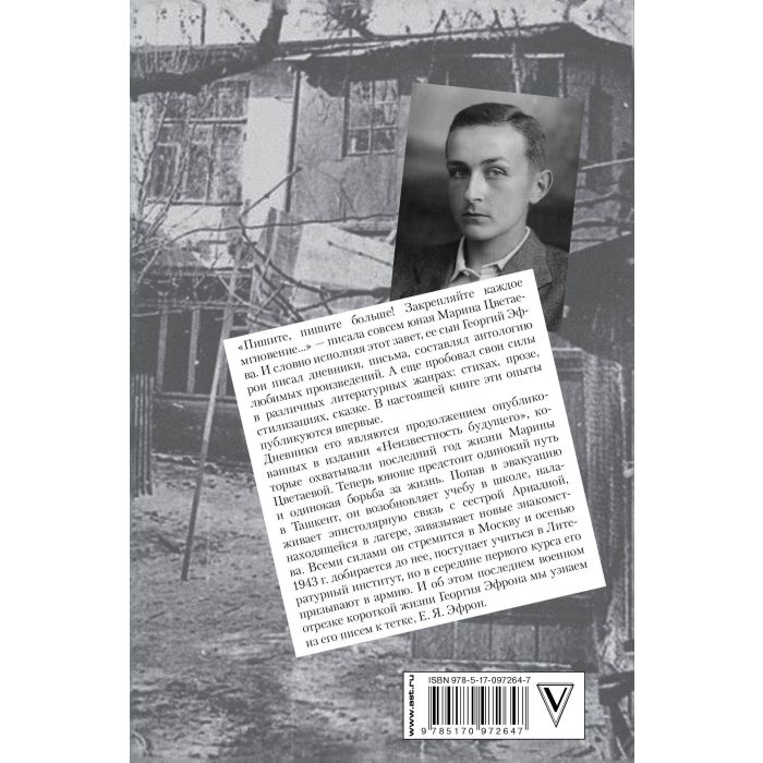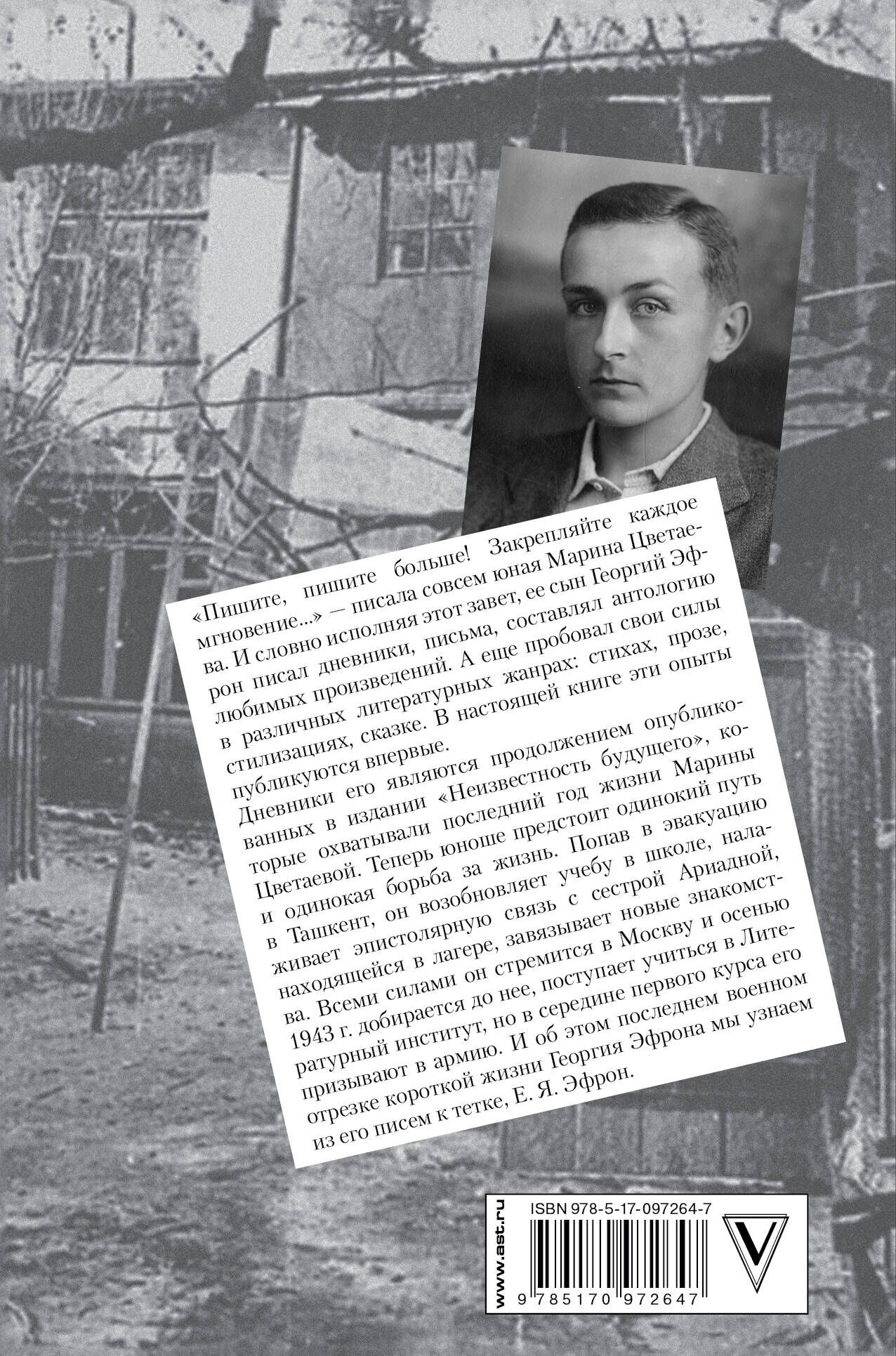 Дневники его являются продолжением опубликованных в издании "Неизвестность будущего", которые охватывали последний год жизни Марины Цветаевой. Теперь юноше предстоит одинокий путь и одинокая борьба за жизнь. Попав в эвакуацию в Ташкент, он возобновляет учебу в школе, налаживает эпистолярную связь с сестрой Ариадной, находящейся в лагере, завязывает новые знакомства. Всеми силами он стремится в Москву и осенью 1943 г. добирается до нее, поступает учиться в Литературный институт, но в середине первого курса его призывают в армию. И об этом последнем военном отрезке короткой жизни Георгия Эфрона мы узнаем из его писем к тетке, Е.Я. Эфрон.