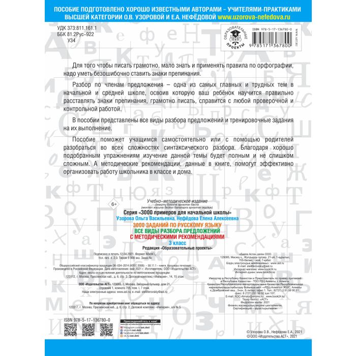 В пособии представлены все виды разбора предложений и тренировочные задания на их выполнение.