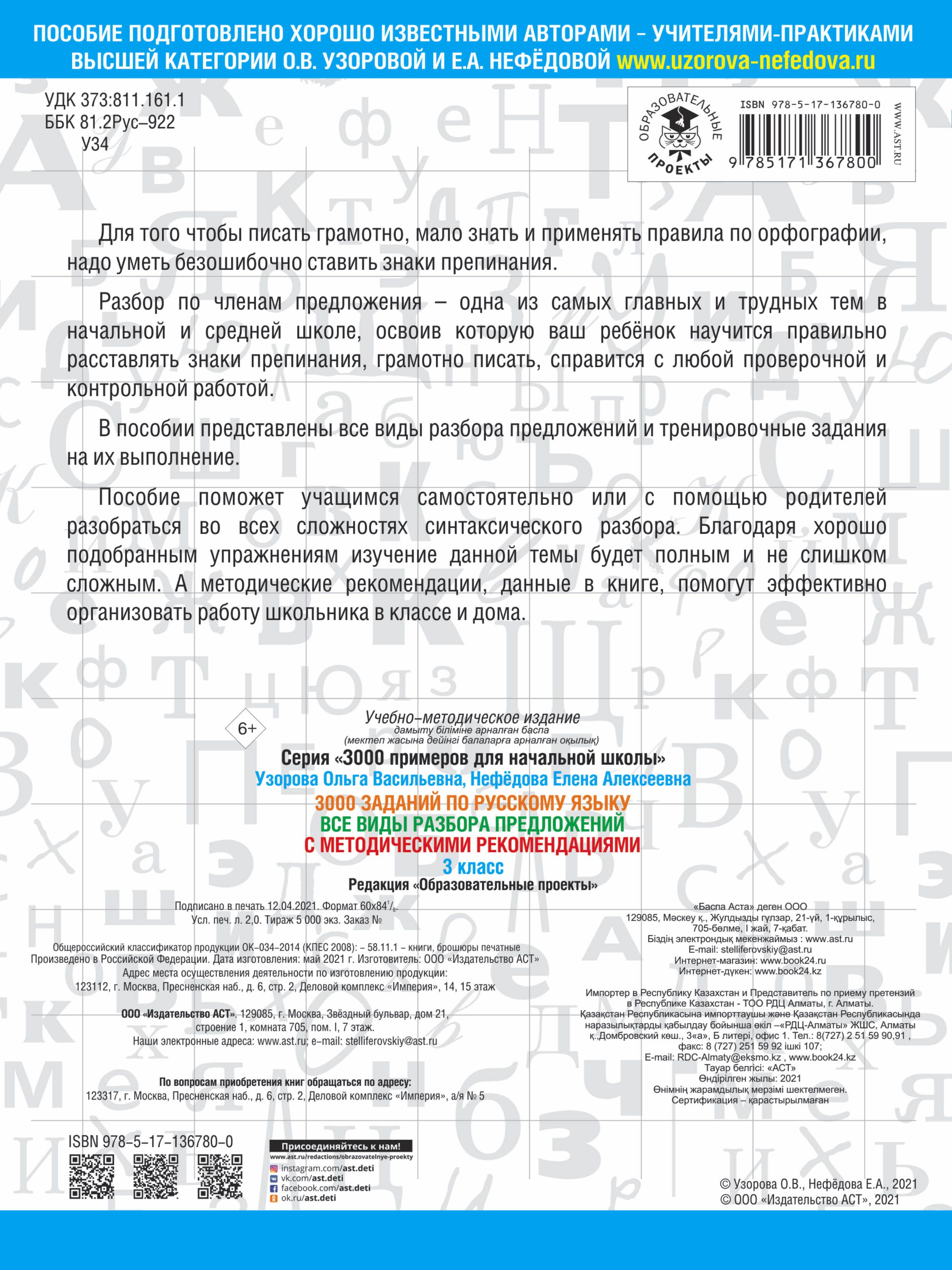 3000 заданий по русскому языку. Все виды разбора предложений. С методическими рекомендациями. 3 клас