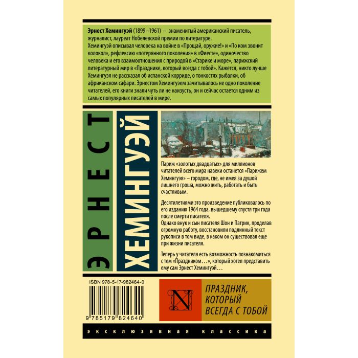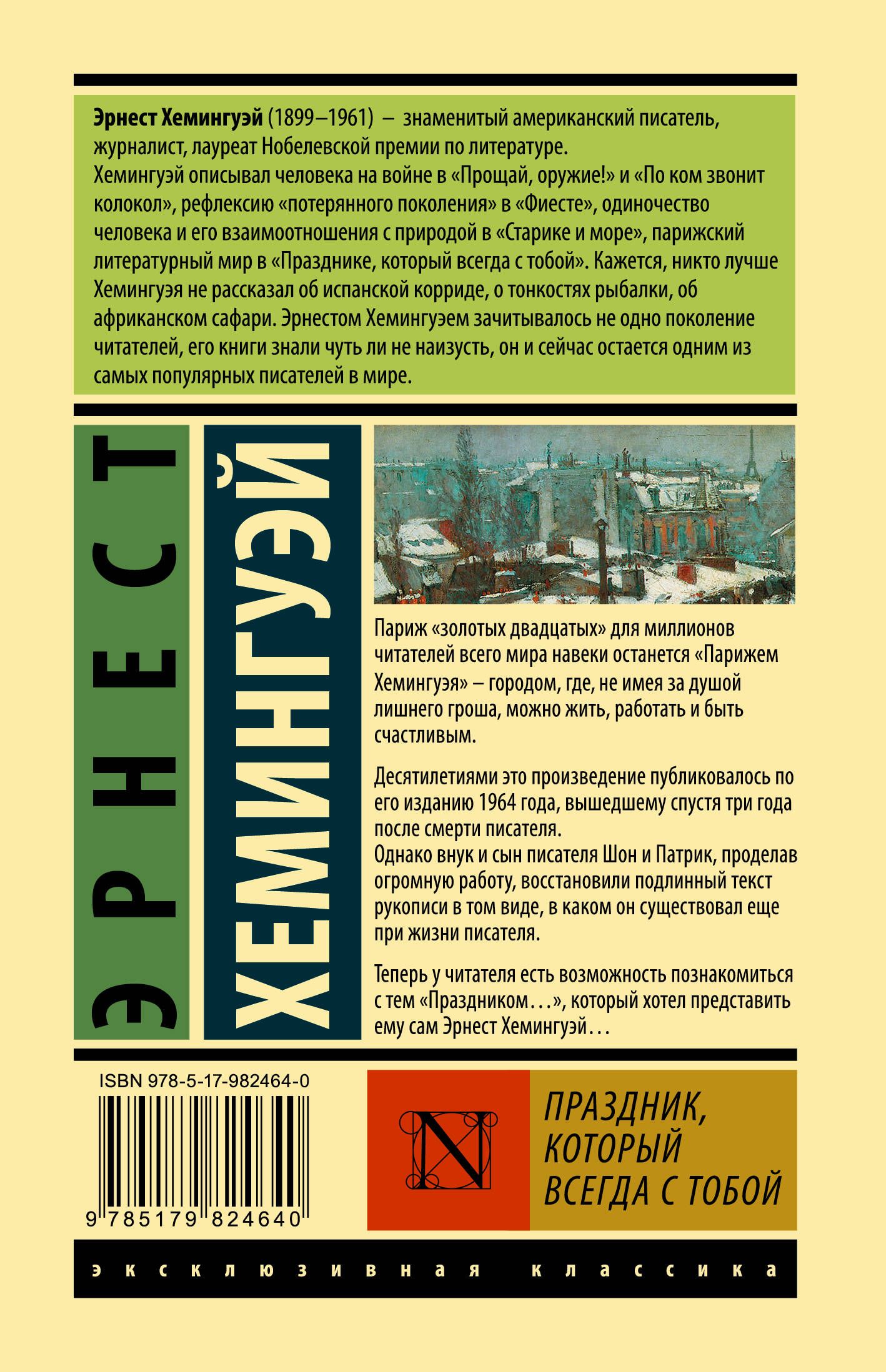 Париж "золотых двадцатых" для миллионов читателей всего мира навеки останется "Парижем Хемингуэя" — городом, где не имея за душой лишнего гроша можно жить, работать и быть счастливым. Десятилетиями это произведение публиковалось по его изданию 1964 года, вышедшему спустя три года после смерти писателя. Однако внук и сын писателя Шон и Патрик, проделав огромную работу, восстановили подлинный текст рукописи в том виде, в каком он существовал еще при жизни писателя. Теперь у читателя есть возможность познакомиться с тем "Праздником…", который хотел представить ему сам Эрнест Хемингуэй…