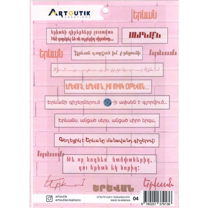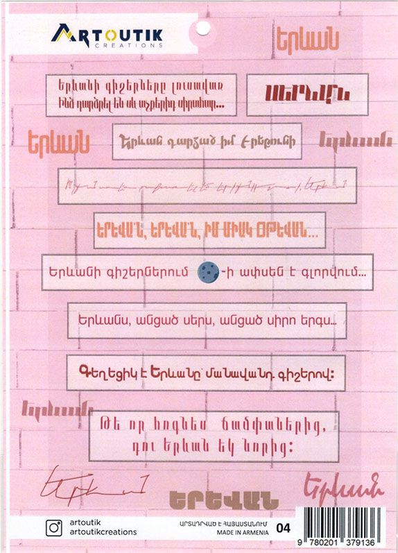 Ինքնակպչուն պիտակ․ Yerevan գրվածքներ․ Կոդ 04
