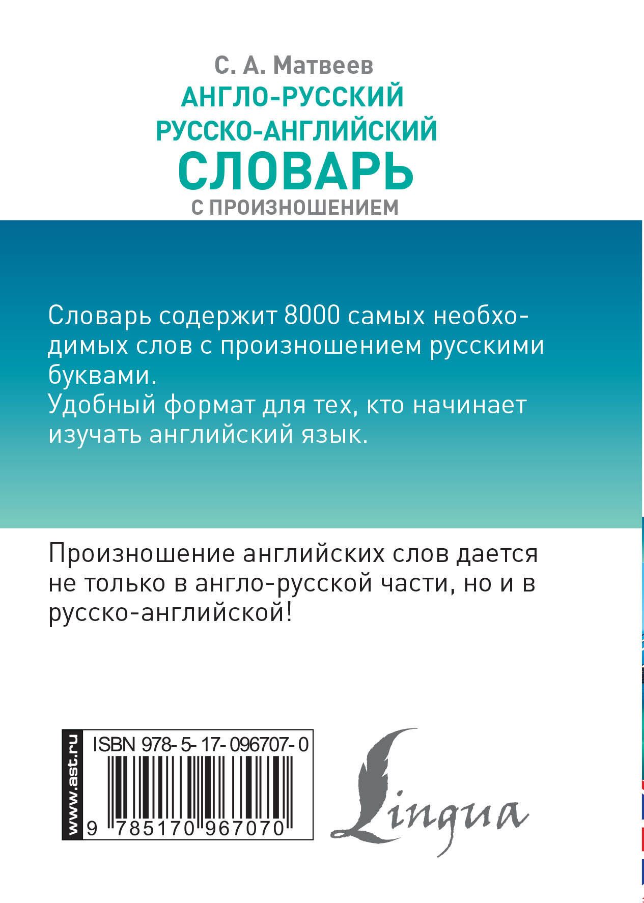 Все слова в англо-русской части снабжены транскрипцией, написанной русскими буквами, причем транскрипция английских слов дается и в русско-английской части.