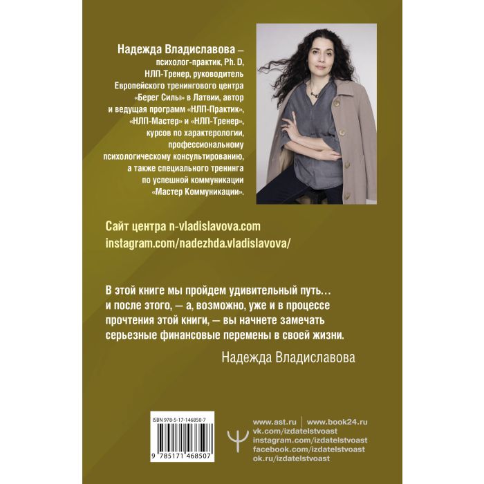 Почти 30-летний опыт работы автора и тысячи учеников, изменивших свою жизнь, — лучшее подтверждение эффективности методик, которые Надежда Владиславова применяет в своей практике.