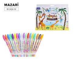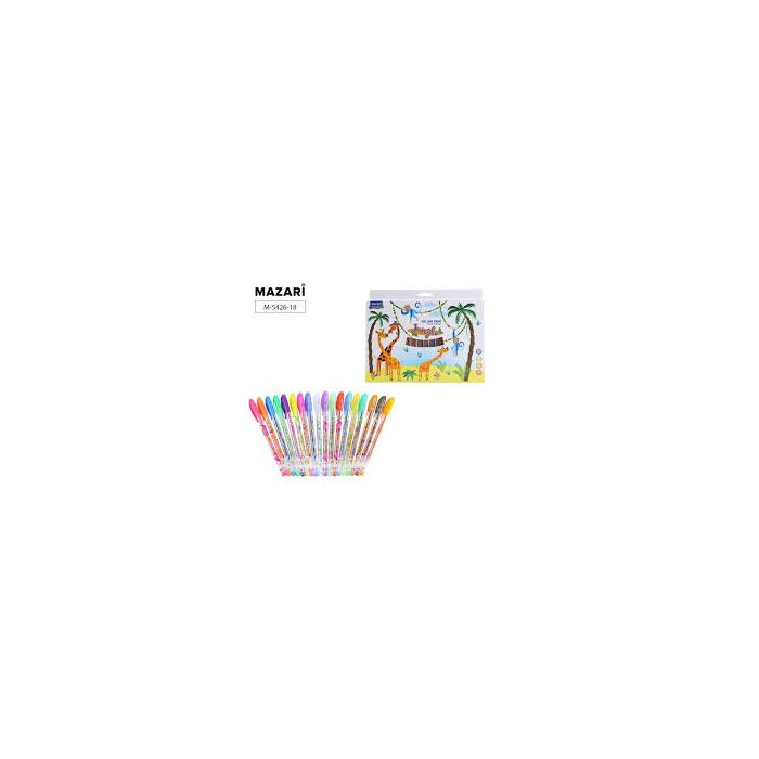 Набор ручек гелевых Mazari Jungle, с блёстками ароматизированными чернилами, 18цв., пулевидный 0.9м