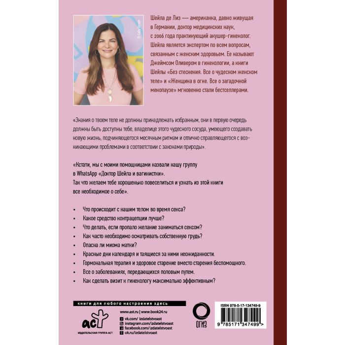 "Понимание снимает налет загадочности и прогоняет страх, ведь больше всего мы боимся именно тех вещей, которые не понимаем. Лишь повысив уровень информированности о своем теле, мы сможем унять беспокойство и начать тратить силы на более интересные вещи. Так что женская анатомия ни в коем случае не должна оставаться лишь знанием для посвященных, доступным одним гинекологам", — обращается к своим читательницам Шейла де Лиз.