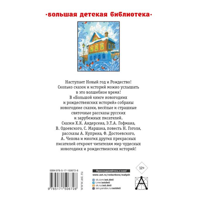 В "Большую книгу новогодних и рождественских историй" вошли самые знаменитые сказки, весёлые и страшные рождественские рассказы русских и иностранных авторов. Сказки С. Маршака, Х.К. Андерсена, повесть Н. Го-