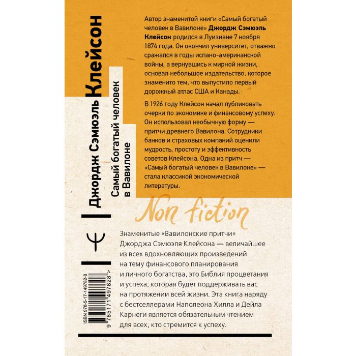 В 1926 году Джордж Сэмюэль Клейсон опубликовал первый из серии своих очерков об экономии и финансовом успехе, используя форму притч древнего Вавилона. Эти произведения получили широкое распространение в банках и страховых компаниях. Их прочли миллионы людей. Наибольшую известность получила притча "Самый богатый человек в Вавилоне", которая стала классикой экономической литературы.