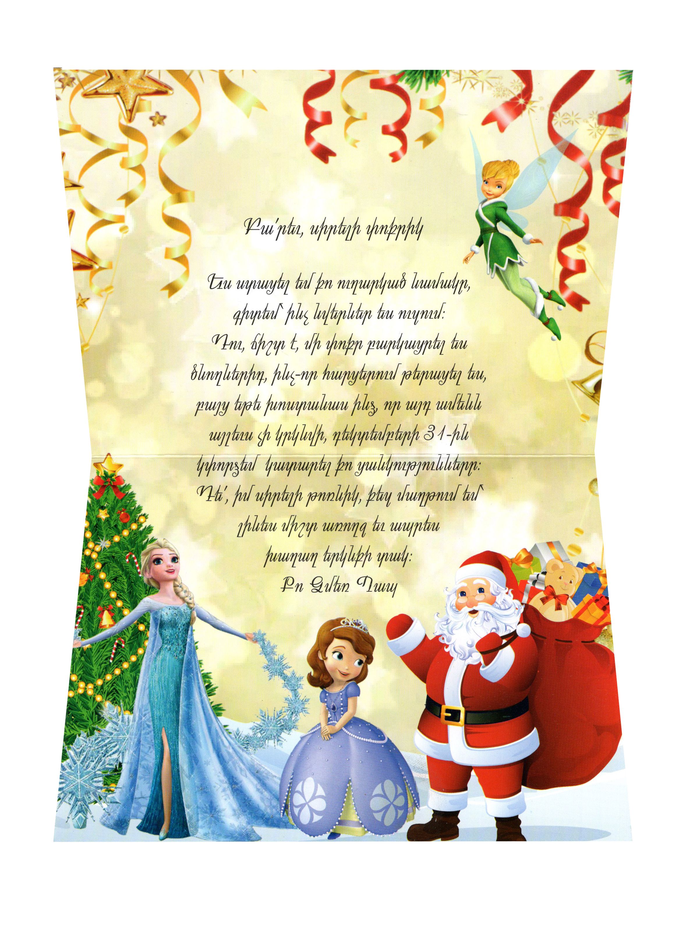 Բացիկ Նամակ Ձմեռ Պապիկին/Պապիկից (Միրզոյան Դավիթ)