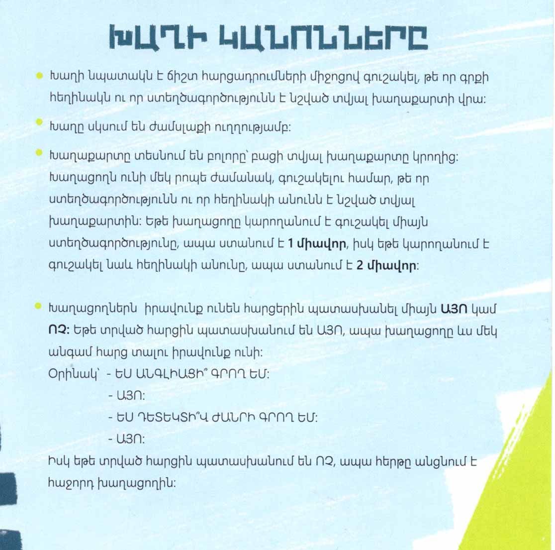 Խաղի նպատակն է ճիշտ հարցադրումների