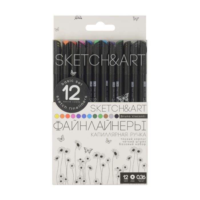 Ручки-лайнеры Альт Sketch&Art Black Edition 12цв. 0.36мм