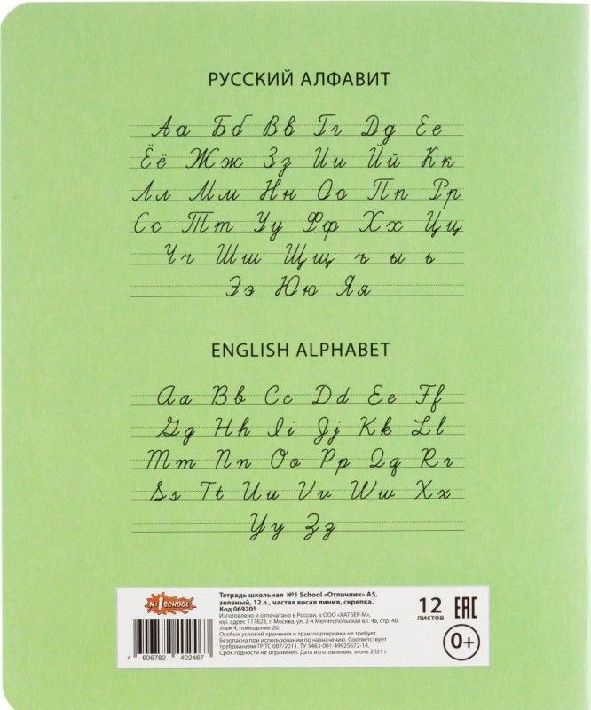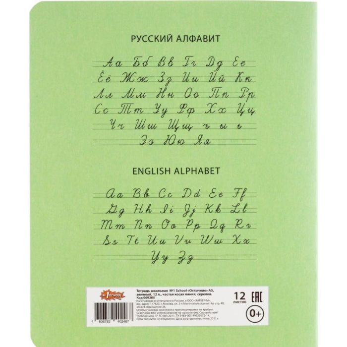 Тетрадь А5 12л. линия косая, стандарт. Классная, зеленая