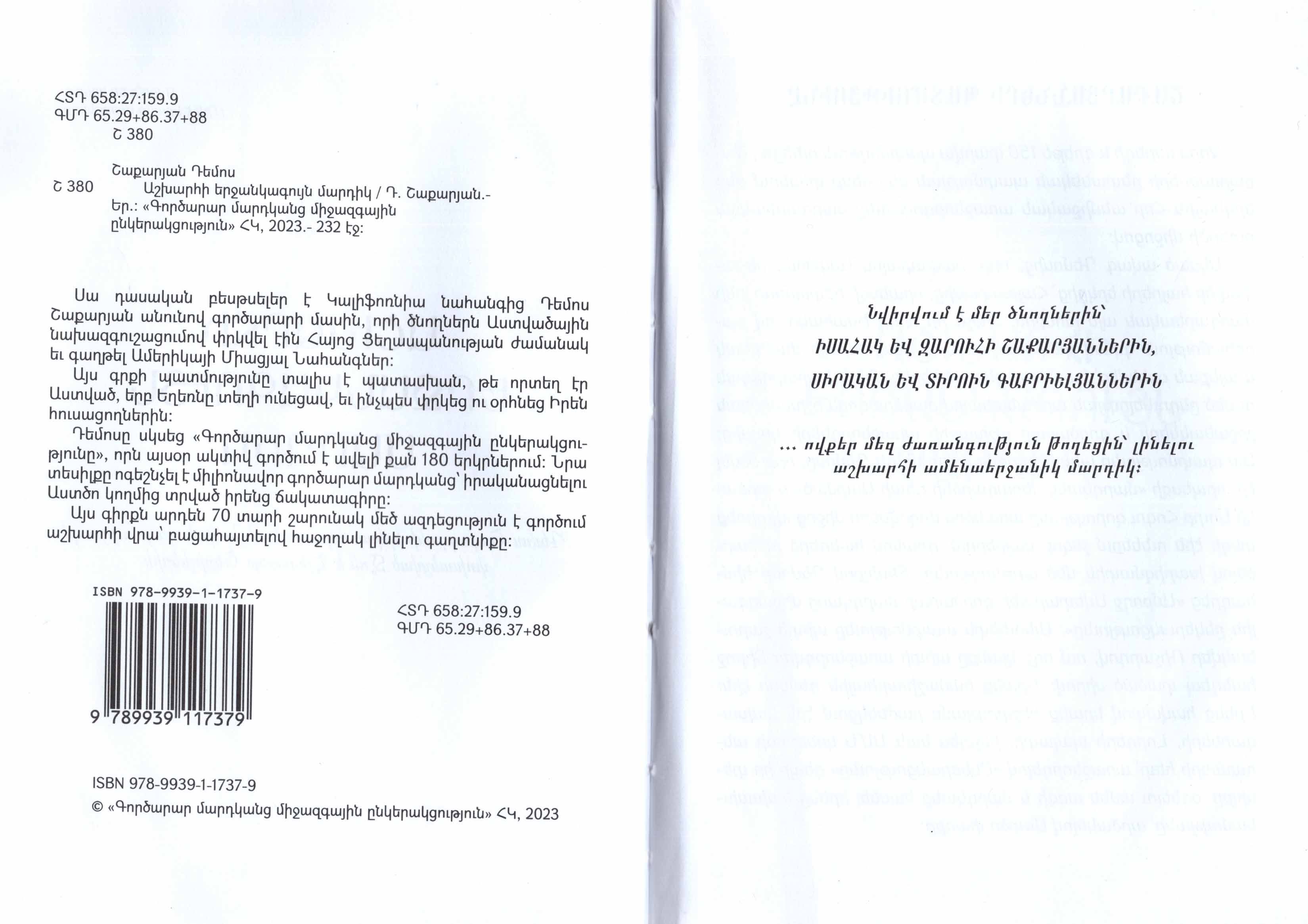 Սա դասական բեսթսելեր է Կալիֆոռնիա նահանգից Դեմոս Շաքարյան անունով գործարարի մասին, որի ծնողներն Աստվածային նախազգուշացումով փրկվել էին Հայոց Ցեղասպանության ժամանակ և գաղթել Ամերիկայի Միացյալ Նահանգներ: Այս գրքի պատմությունը տալիս է պատասխան, թե որտեղ էր Աստված, երբ Եղեռնը տեղի ունեցավ, և ինչպես փրկեց ու օրհնեց իրեն հուսացողներին: Դեմոսը սկսեց «Գործարար մարդկանց միջազգային ընկերակցությունը», որն այսօր ակտիվ գործում է ավելի քան 180 երկրներում: Նրա տեսիլքը ոգեշնչել է միլիոնավոր գործարար մարդկանց՝ իրականացնելու Աստծո կողմից տրված իրենց ճակատագիրը: Այս գիրքն արդեն 70 տարի շարունակ մեծ ազդեցություն է գործում աշխարհի վրա՝ բացահայտելով հաջողակ լինելու գաղտնիքը: