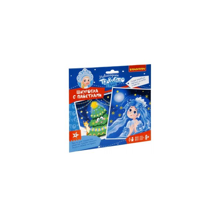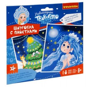 Новогодний набор для творчества Bondibon. Аппликация нитями. Шнуровка с пайетками
