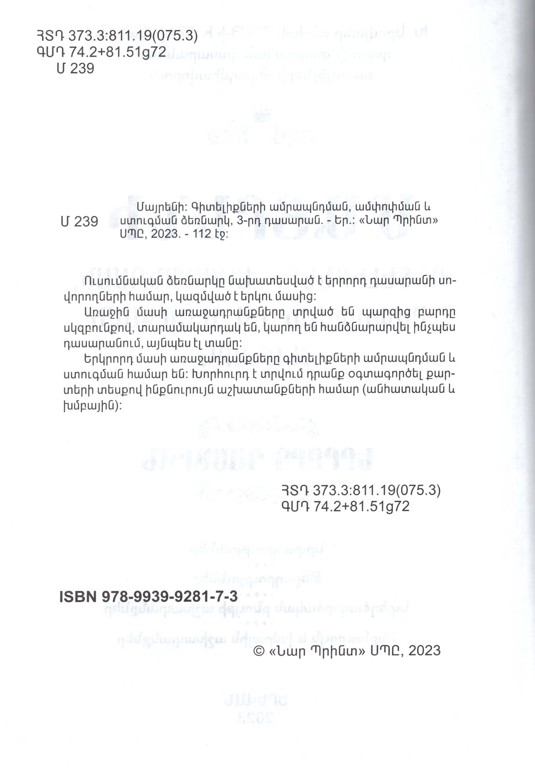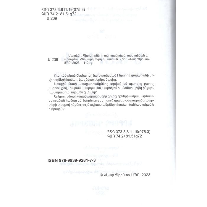 Մայրենի։ Գիտելիքների ամրապնդման, ամփոփման և ստուգման ձեռնարկ, 3-րդ դասարան