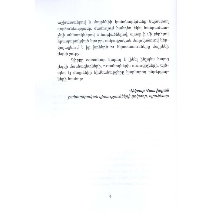 Գրքում զետեղված են հայոց լեզվի որոշ հարցերի և խնդիրների, տարածված սխալների և երկձևությունների շուրջ հեղինակի դիտարկումները, որոնք գիտահանրամատչելի հոդվածների տեսքով ժամանակին հրատարակվել են մամուլում: