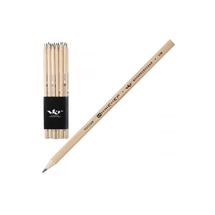 Карандаш графитный ВКФ Инженер 5М 5B, заточенный