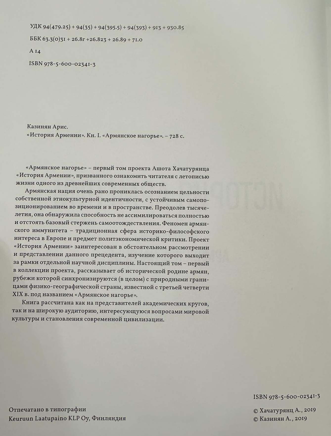 «Армянское нагорье»- первый том проекта Ашота Хачатурянца «История Армении», призванного ознокомить читателя с летописью жизни одного из древнейших современных обществ.